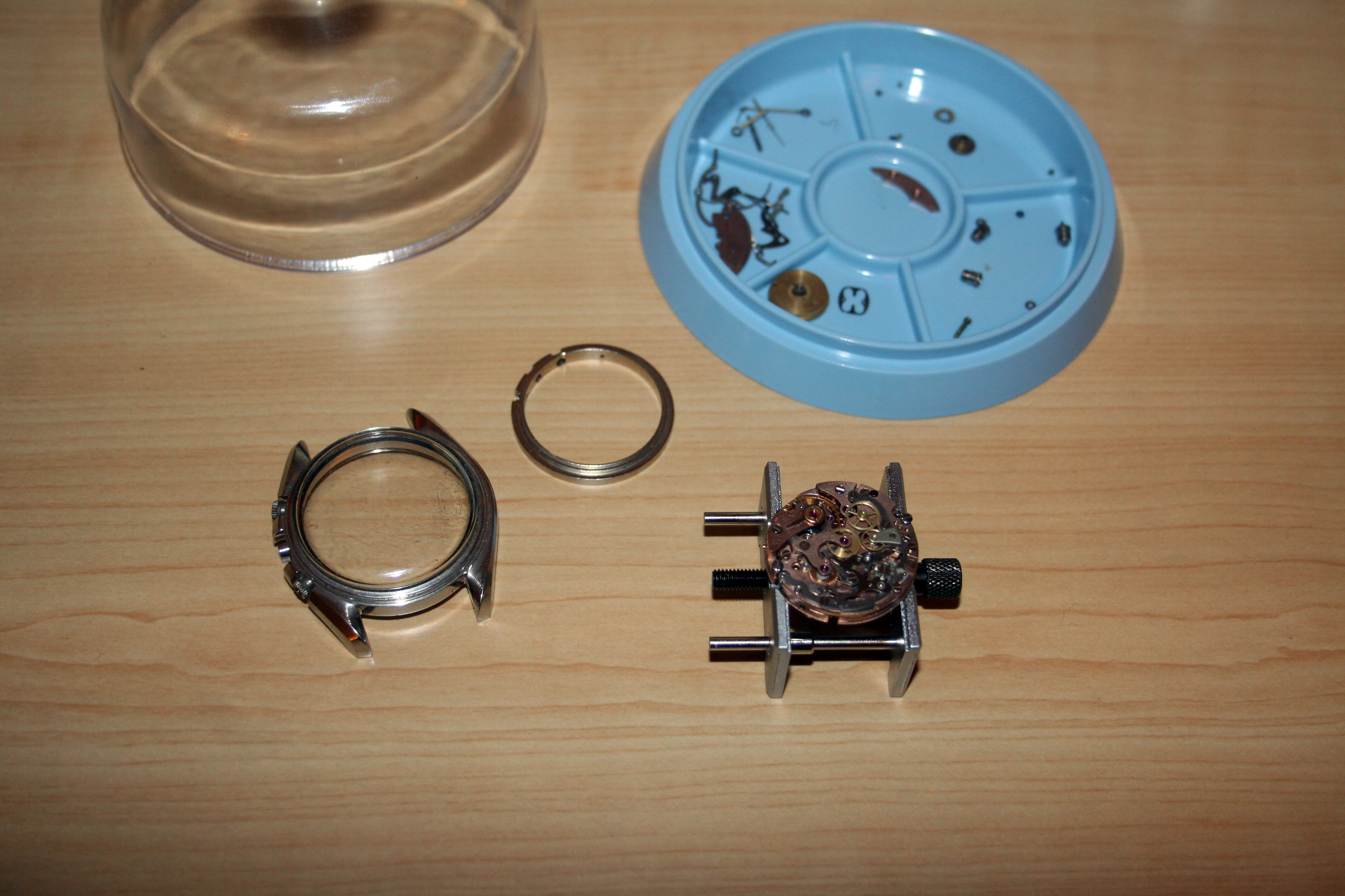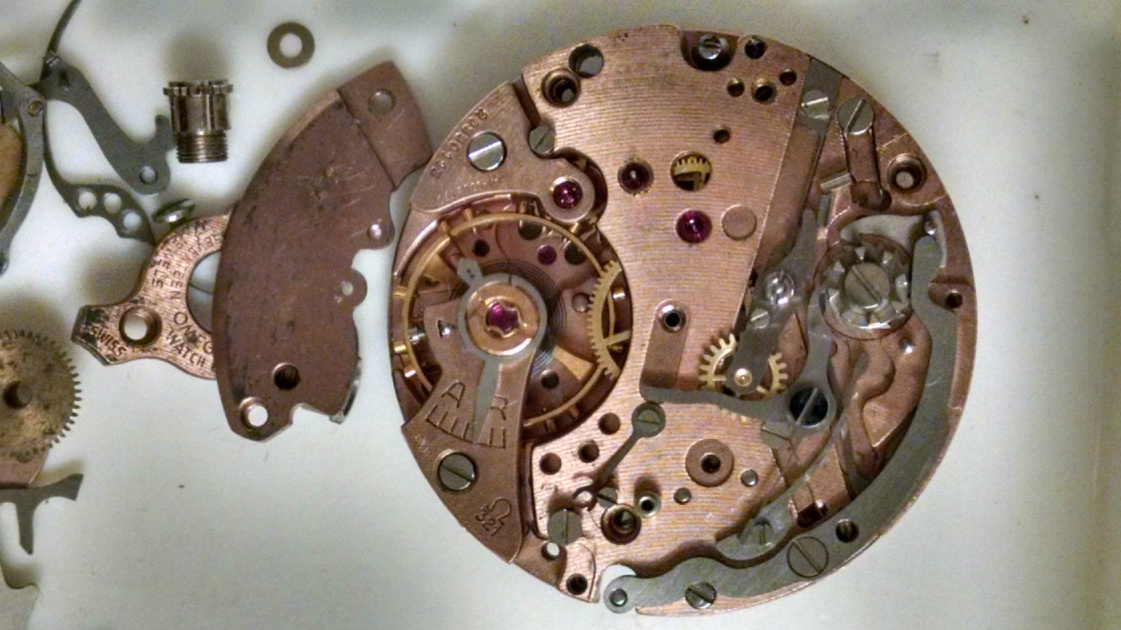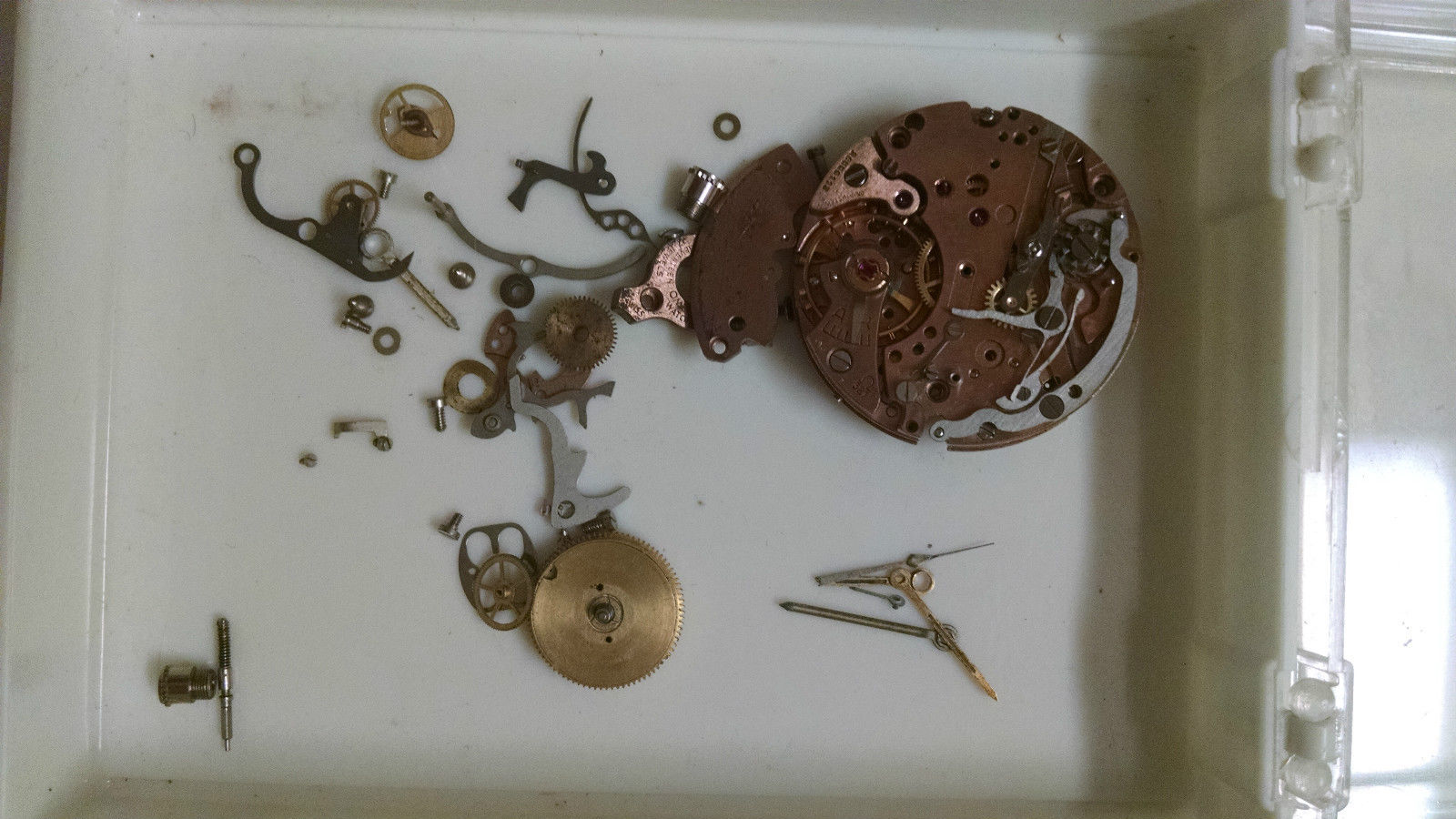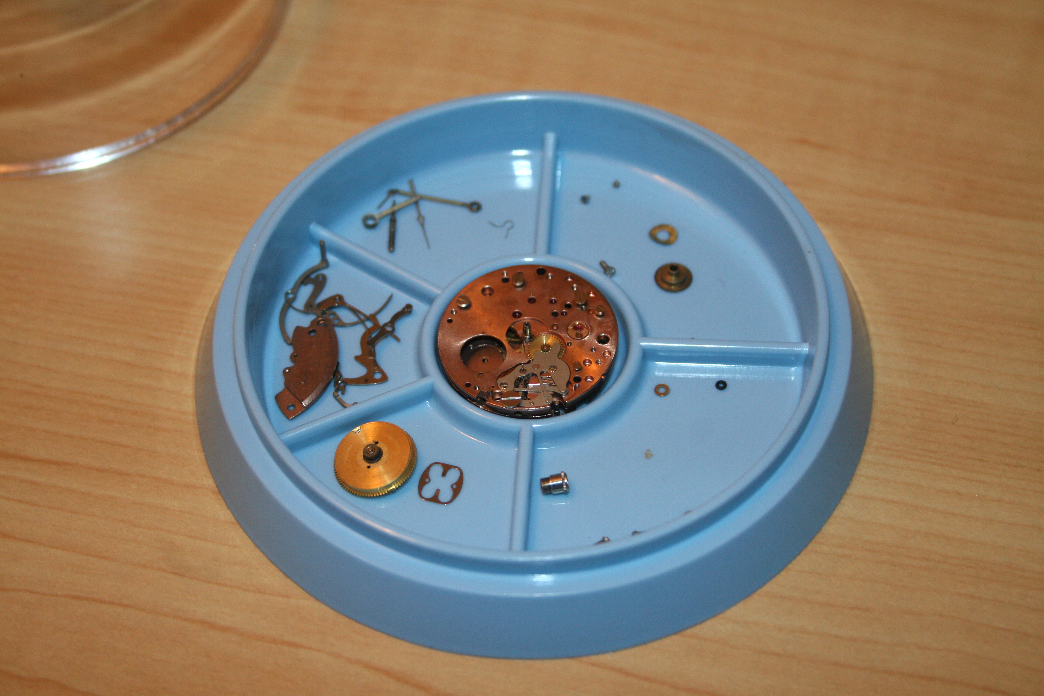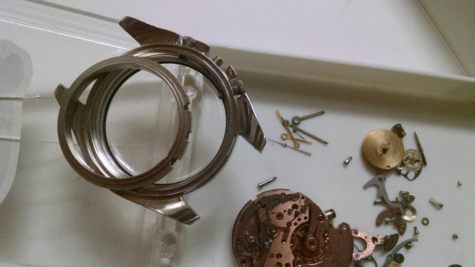 I thanked and paid the gentlemen and accepted my prize- a semi assembled Speedmaster in an Altoids tin. Now it is important to note that as of this date I had absolutely no experience repairing watches whatsoever and I had just accepted as my first project one of the most iconic timepieces of the 20th century.  This was the Moonwatch. A timepiece that can sell for several thousand dollars. A timepiece with a movement that has not been in production for over forty years- with limited parts availability, and a chronograph to boot. Heading back home I wondered if I may have made a very costly mistake; my wife in the passenger seat held the Altoids tin gingerly as if it contained nitroglycerin.