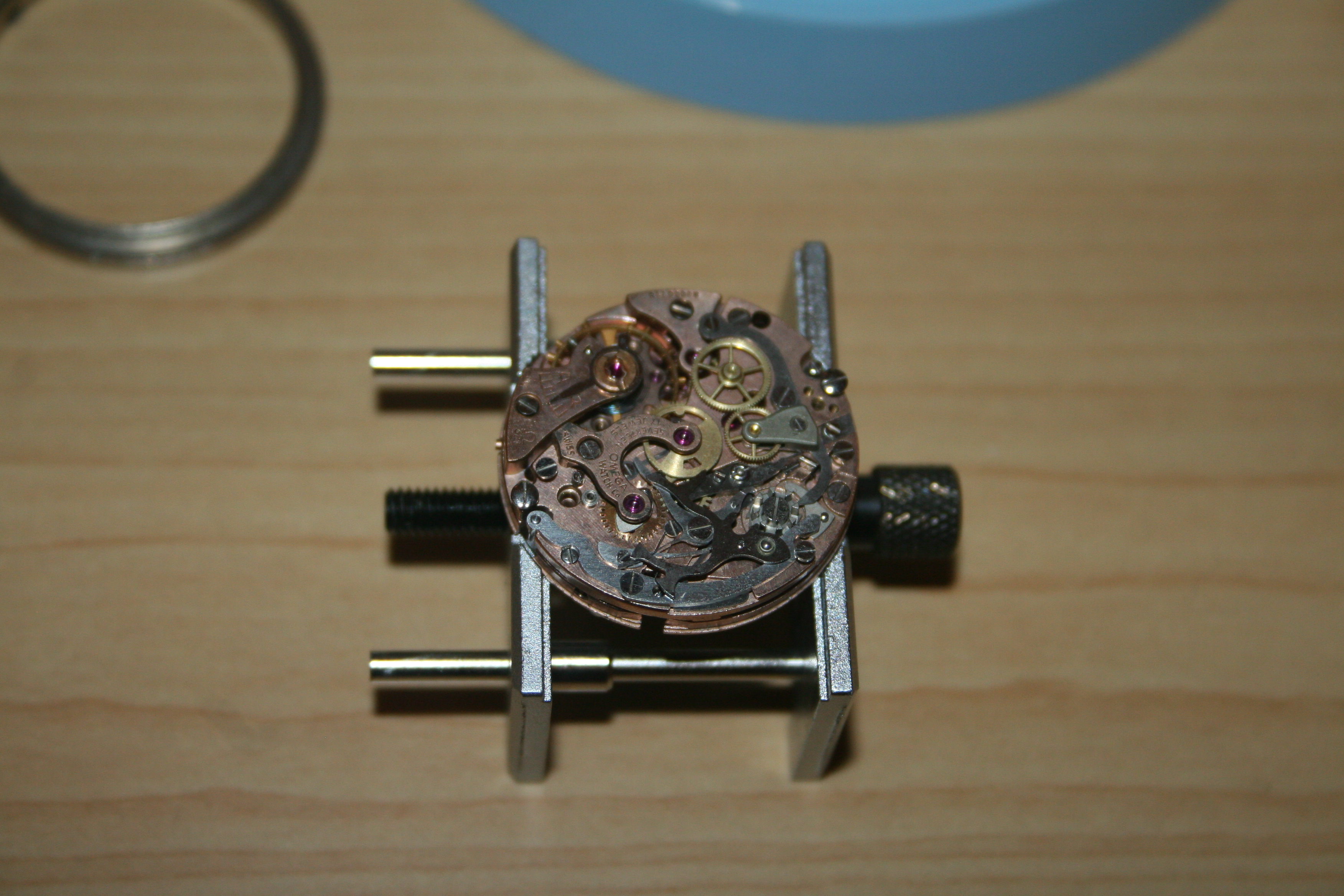 It was at this point that the first problem became apparent. The chronograph blocking lever screw had been broken off in the the plate! A thread or two of the screw still held and the seller had clandestinely screwed what remained back into the plate. Sneaky yes, but I had expected there to be issues so this wasn’t too much of a bother.