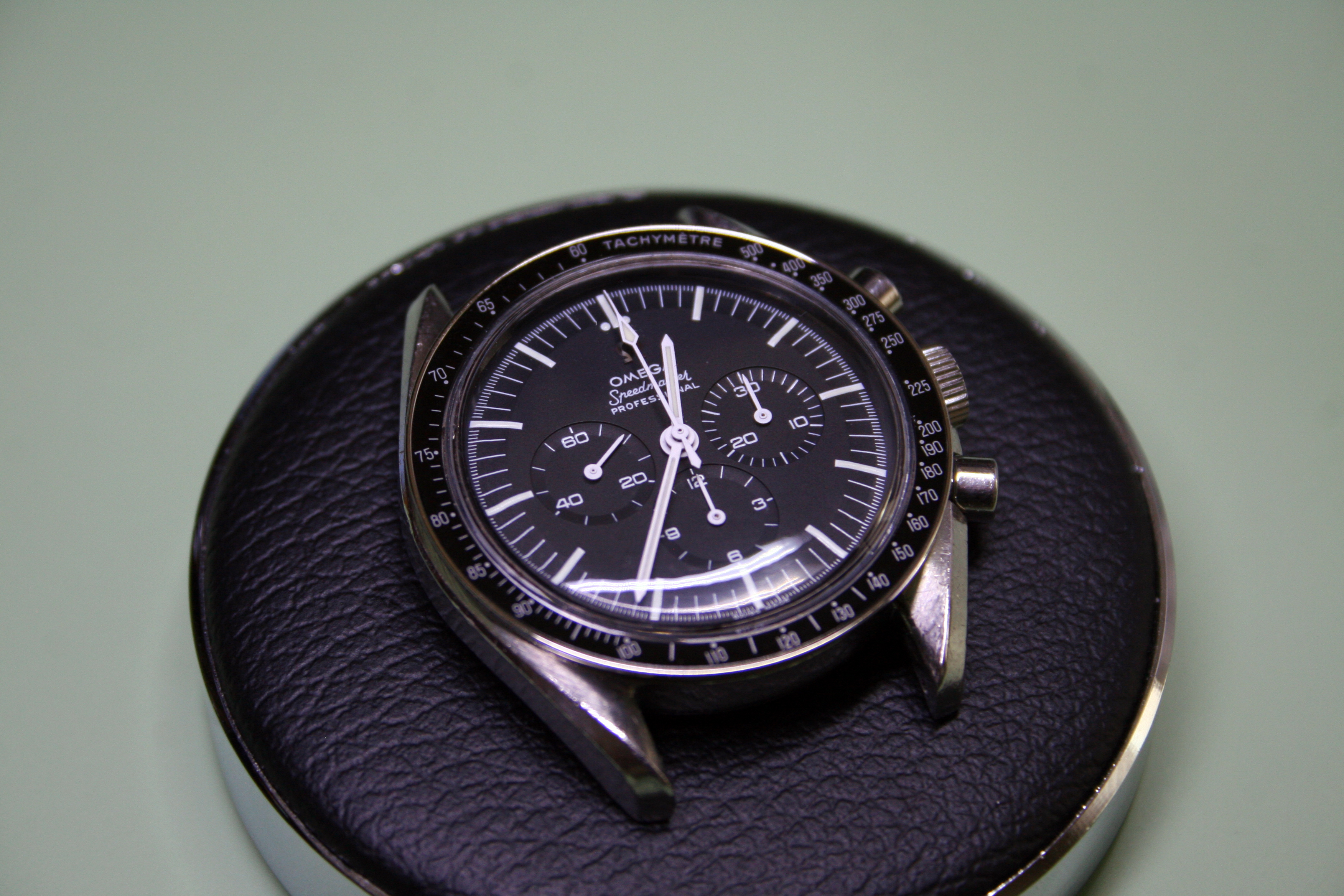 Four months back, convinced that I could repair a broken Omega Speedmaster for less than the cost of a new one, I took a flyer on a collection of parts that were being offered on eBay. The pieces, when assembled, would compile about ninety percent of the watch in question- a 1967 Omega Speedmaster Professional (model no. 145.012-67). Still to be acquired would be the dial, bezel, caseback, crown, pushers, and three missing hands.