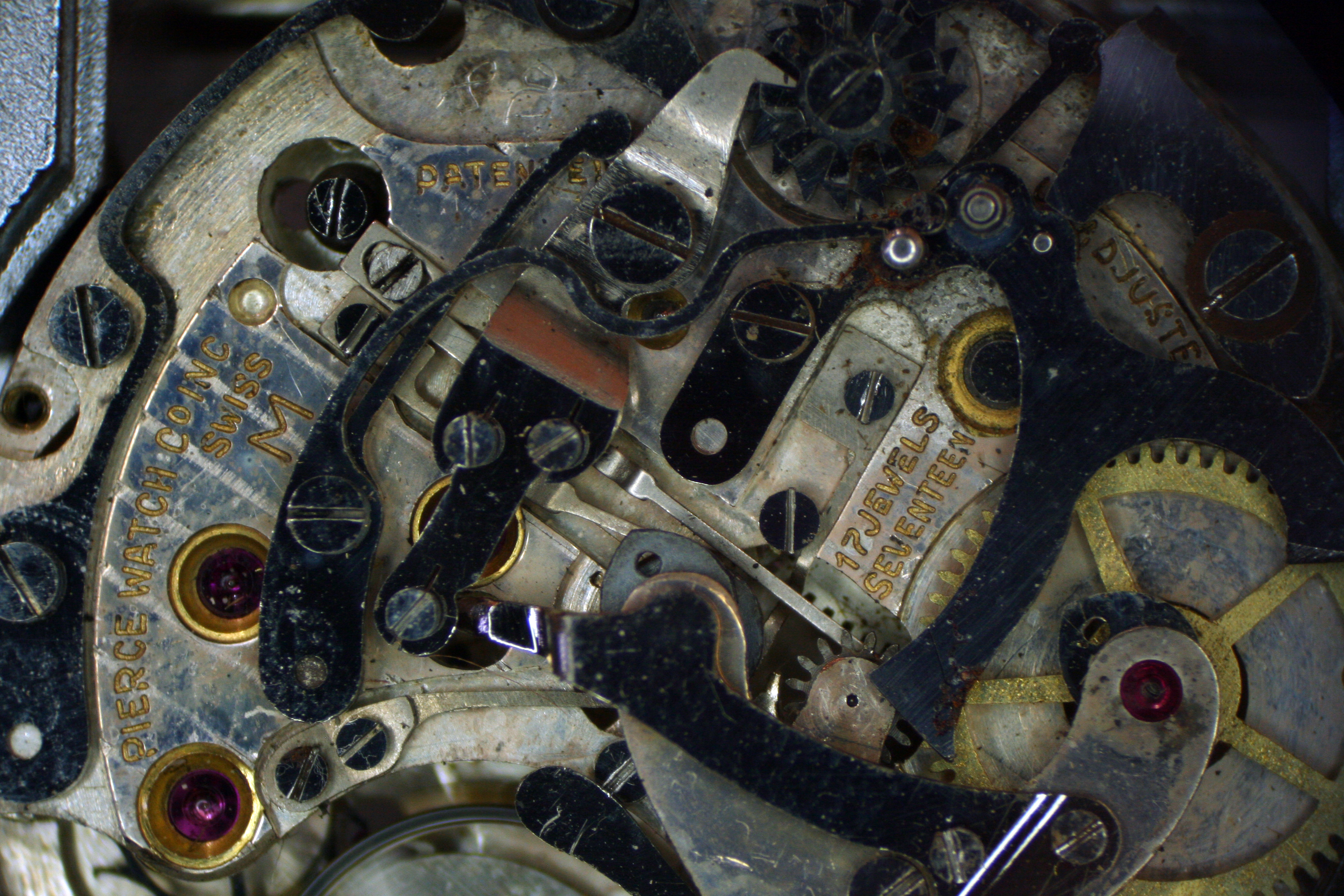 It must have received a heck of a shock because the jewel setting for the minute recording wheel was broken too.