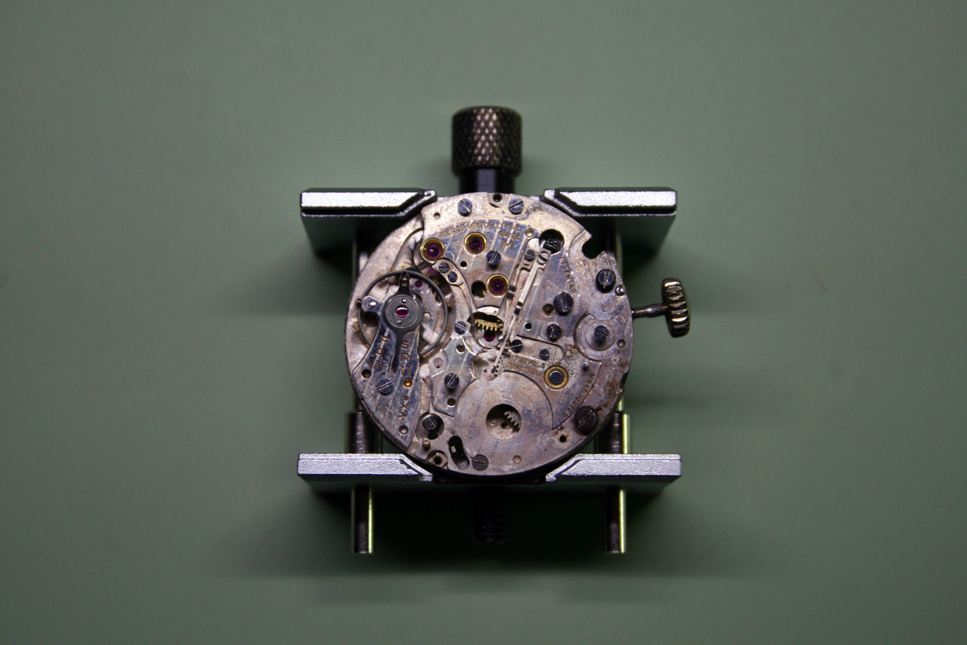 As you can see this watch was in a poor state when I received it. The watch was lacking a crown and crystal and the sweep second hand had gone missing as well. Furthermore, the watch didn’t run, but being a bit naive and at the same time confident in my skills I figured “how bad can it be” and dove right in.