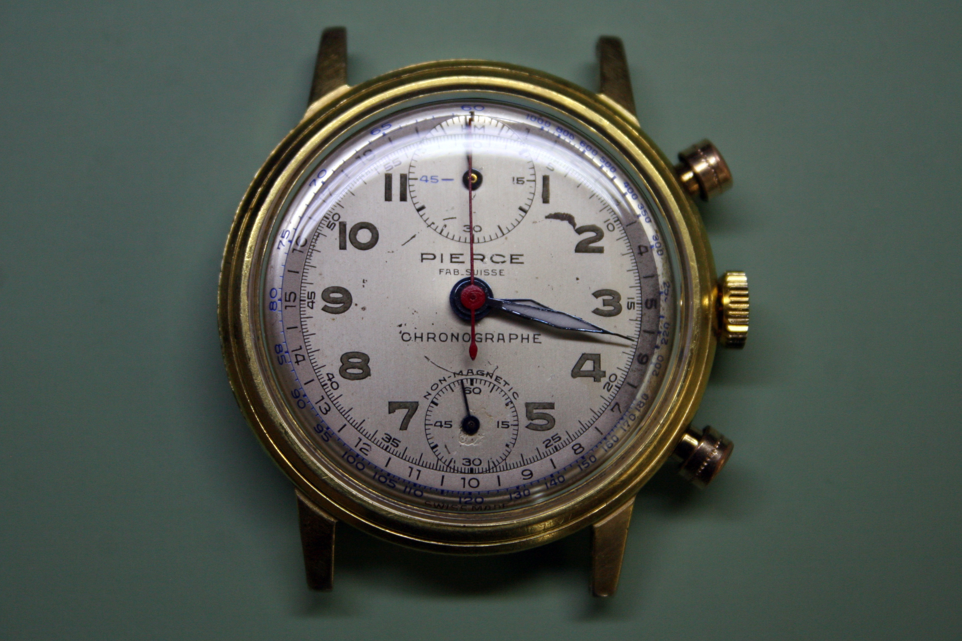 Today I wrapped up service of the second Pierce Navigator chronograph that I purchased back in February of this year. This watch was purchased at the same time as the nickel plated Pierce that I serviced earlier but it took much longer to complete as there were numerous issues on the inside and it needed a bit more restoration work on the outside.