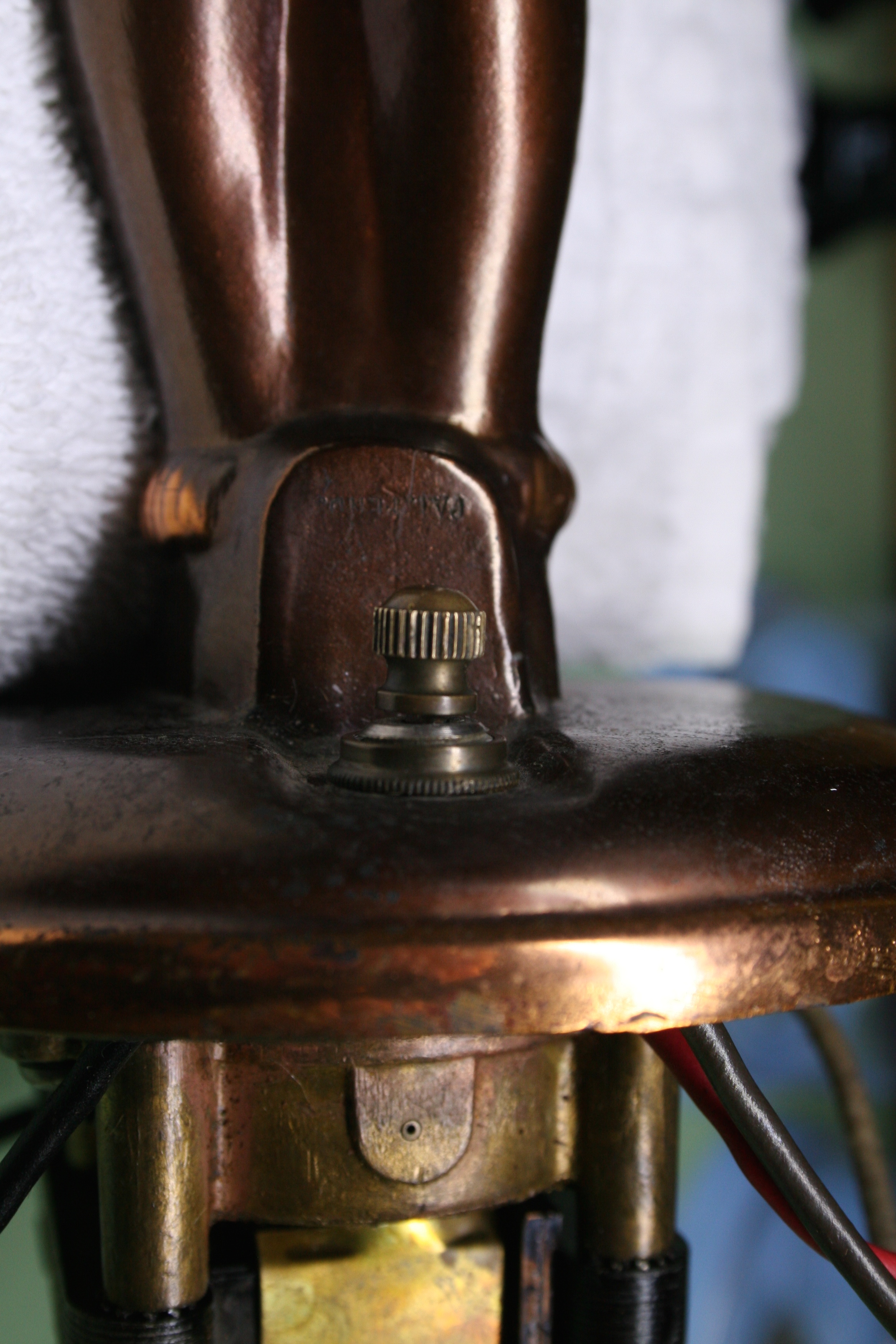 Finding a shop to repair the lamp turned out to be a fruitless endeavor. A watchmaker was suggested so my father asked me to take a look at the problem. I took the lamp from him about three weeks back and labored on it whenever my other jobs ended up queued for parts.