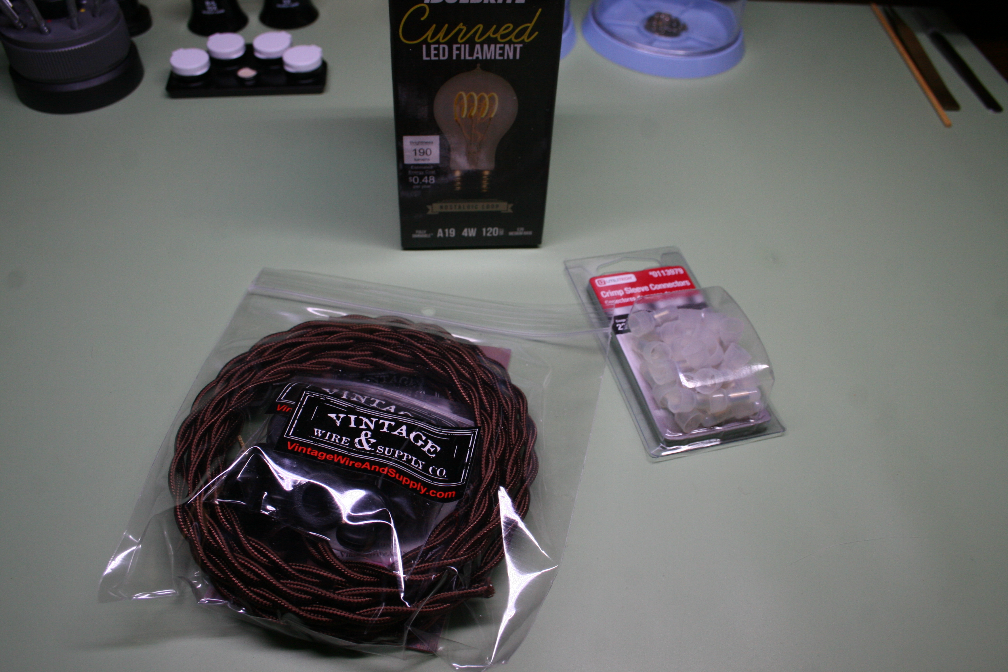 The power cord was removed and a new one was sourced from Vintage Wire & Supply Co. along with a retro style LED bulb.