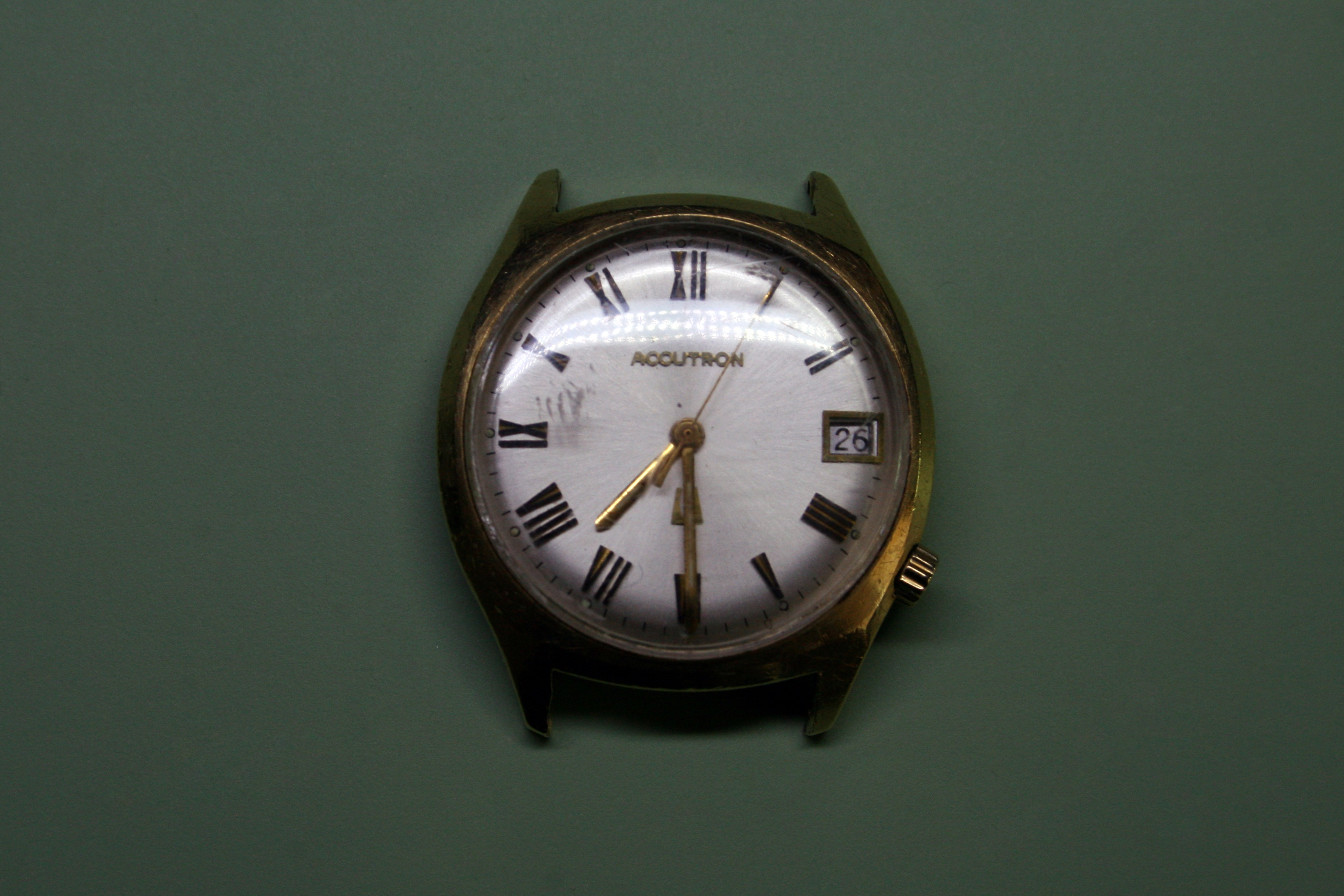A few months ago he gifted me the Accutron on account of my keen interest in horology. The watch no longer ran but being an electrically driven mechanical movement I figured on the battery having been long dead. A replacement battery confirmed my suspicion but soon after patting myself on the back for a job well done I noticed the minute and hour hands seemed to be stuck in place.