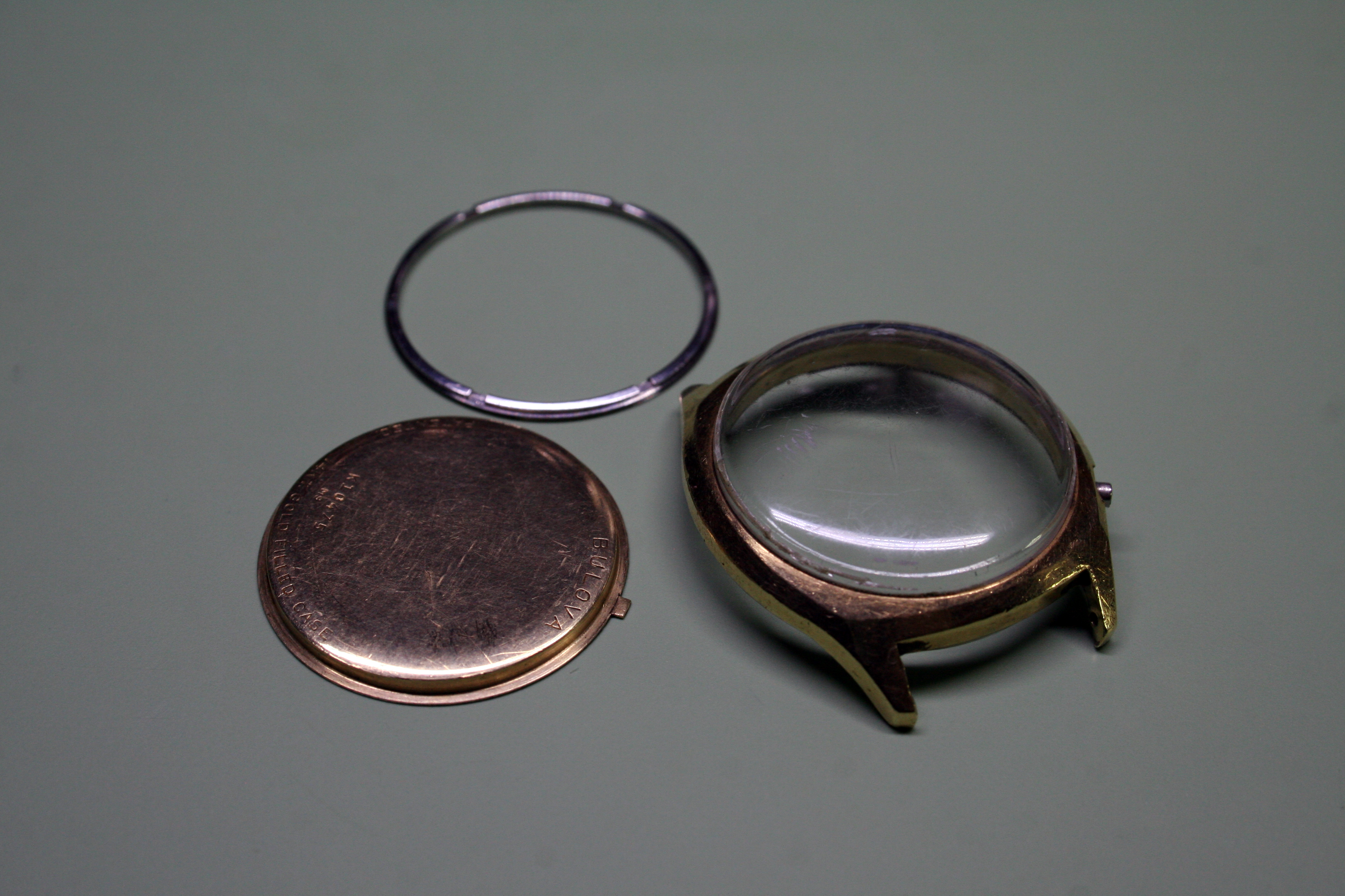 The case was dirty and the crystal badly scratched so it was removed and then the case was run through the ultrasonic cleaner.