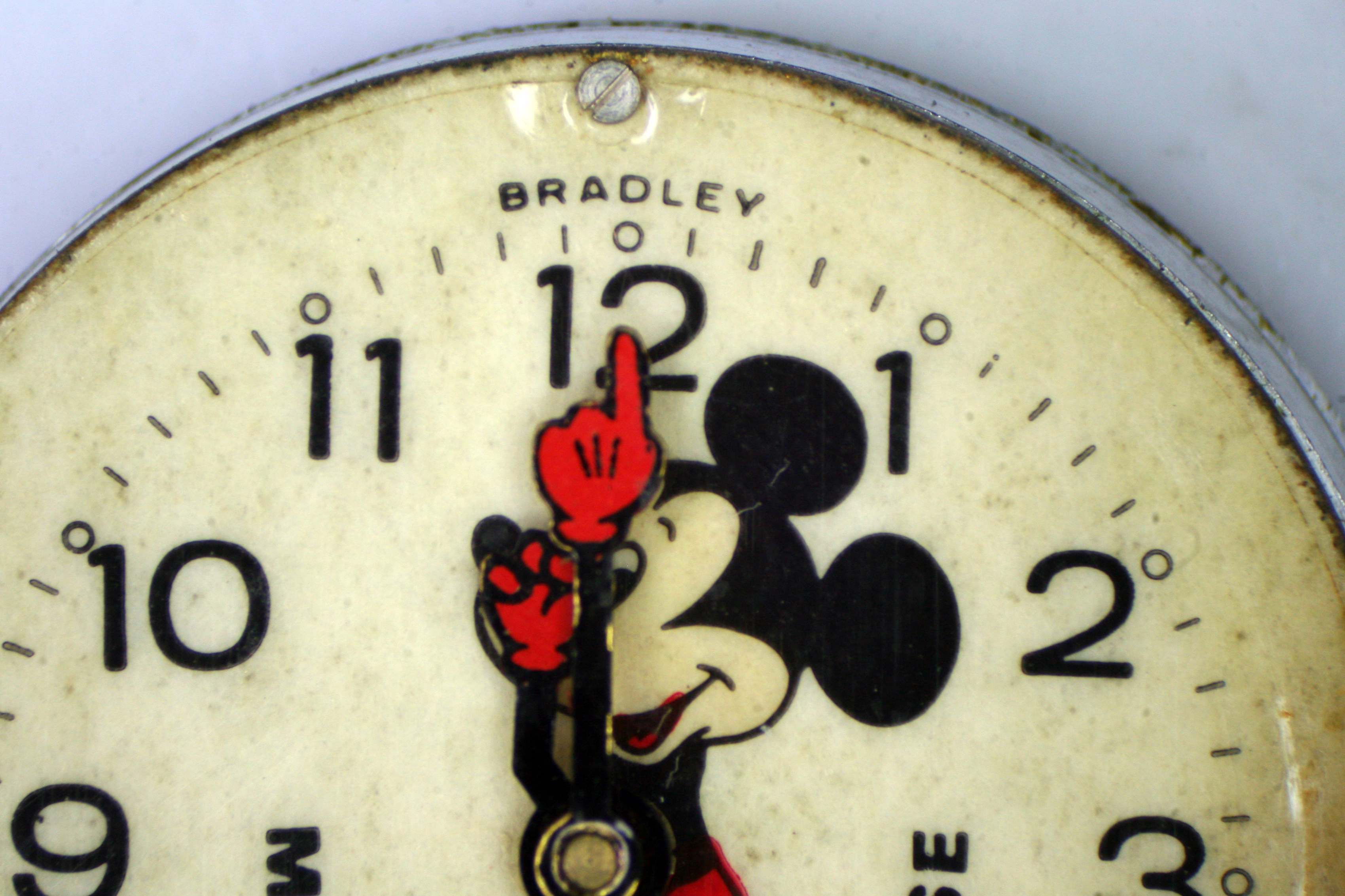 Curious if you can give me a little more info on the watch. I’ve recently inherited a Bradley Swiss Made #23 Mickey watch from my mother and I’m trying to find a band for it. Do you know if the band is 12 mm or 13? I can’t quite tell. Also, the case is a little corroded and the glass above the face has a significant scratch on it. Do you have any advice on cleaning or conserving the case and maybe replacing the glass?