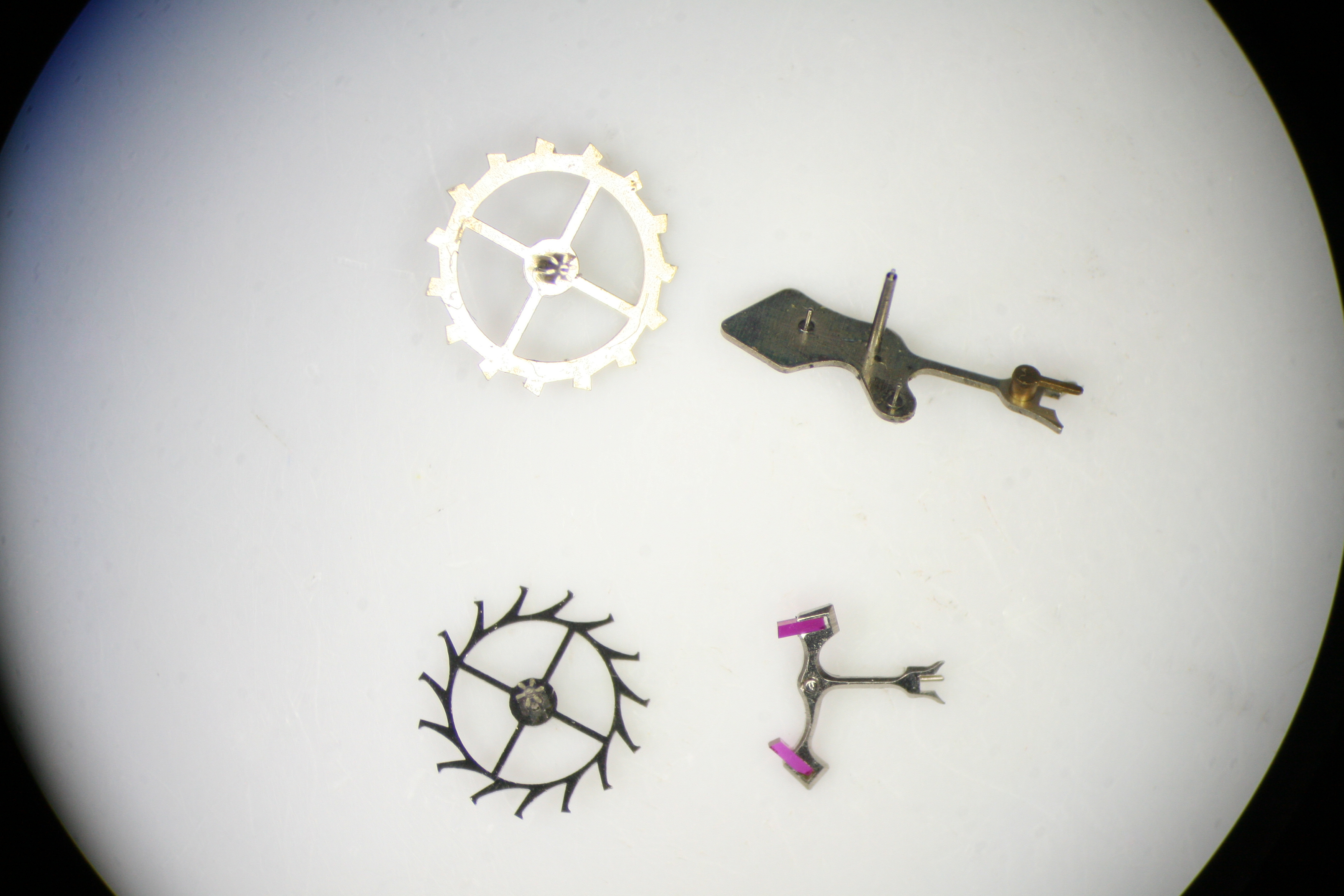 This was not pleasing, but the pivots on gear train seemed to be okay and the escape wheel was unaffected so the parts didn’t go into the rubbish bin just yet.