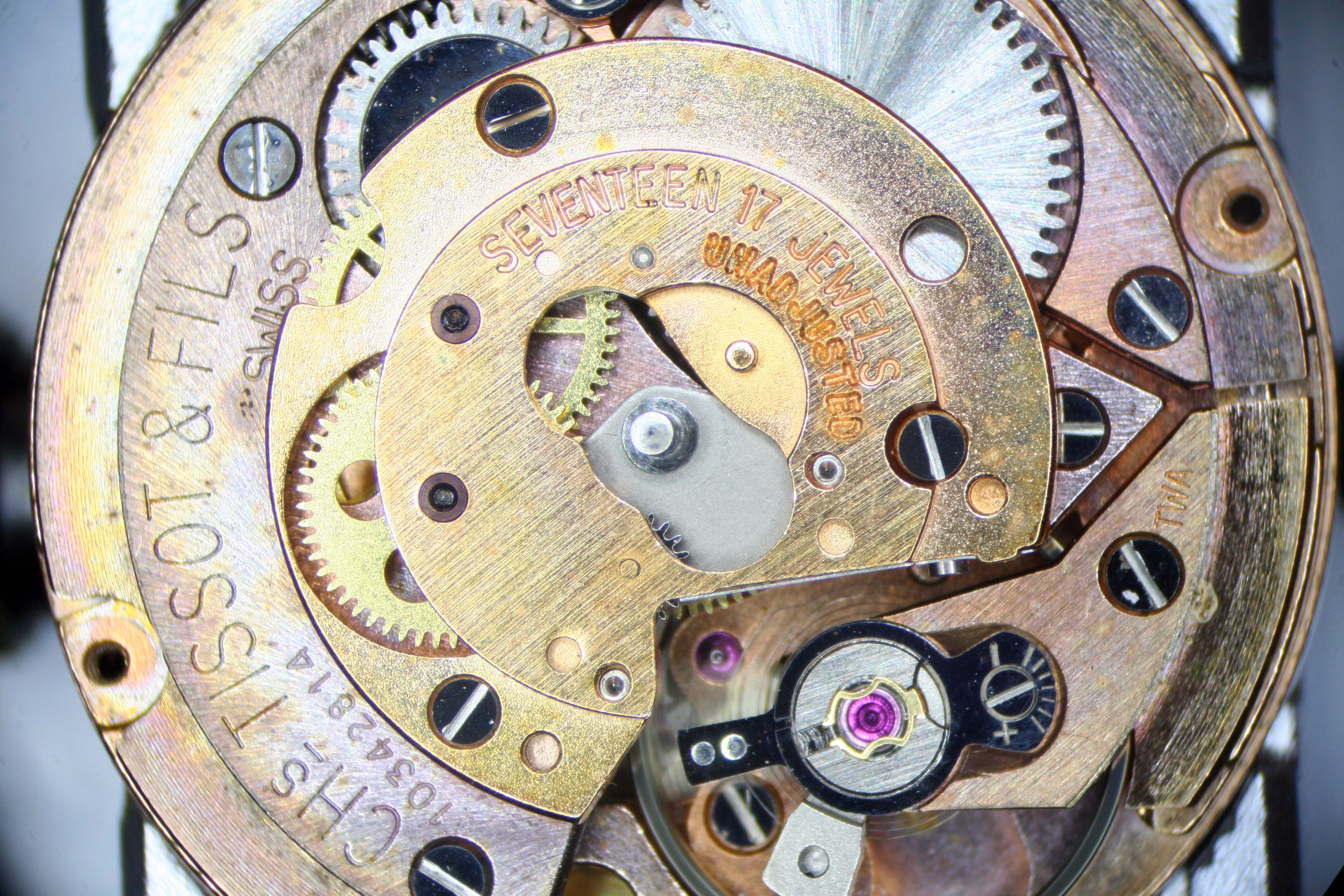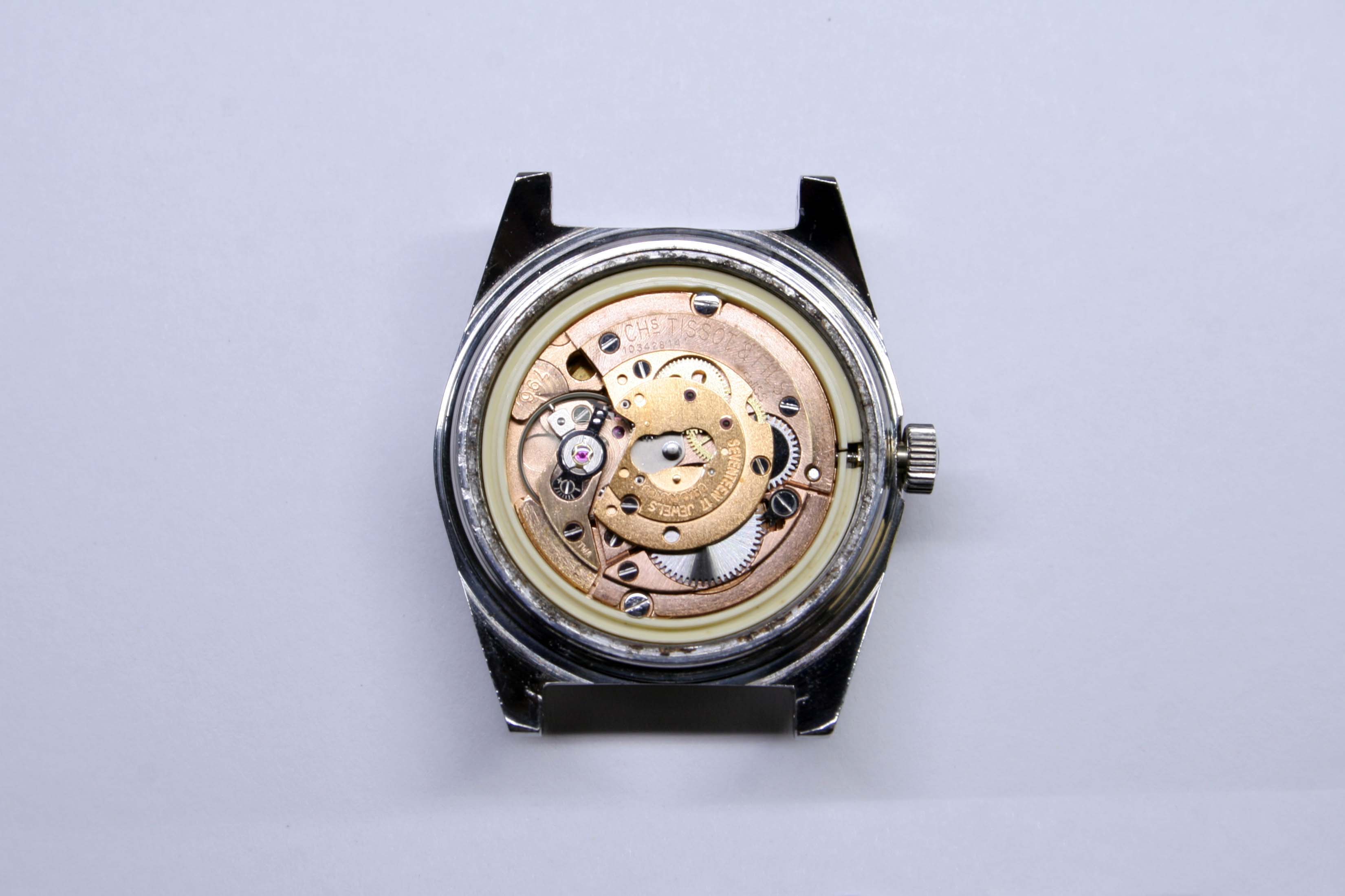 Eager to engage in a more straightforward mechanical watch service after trying my hand at some Accutrons and pin-pallet movements, I popped the caseback off to see what was inside. What a found was a nicely finished Tissot 796 automatic movement which appeared a little grimy but in good shape.
