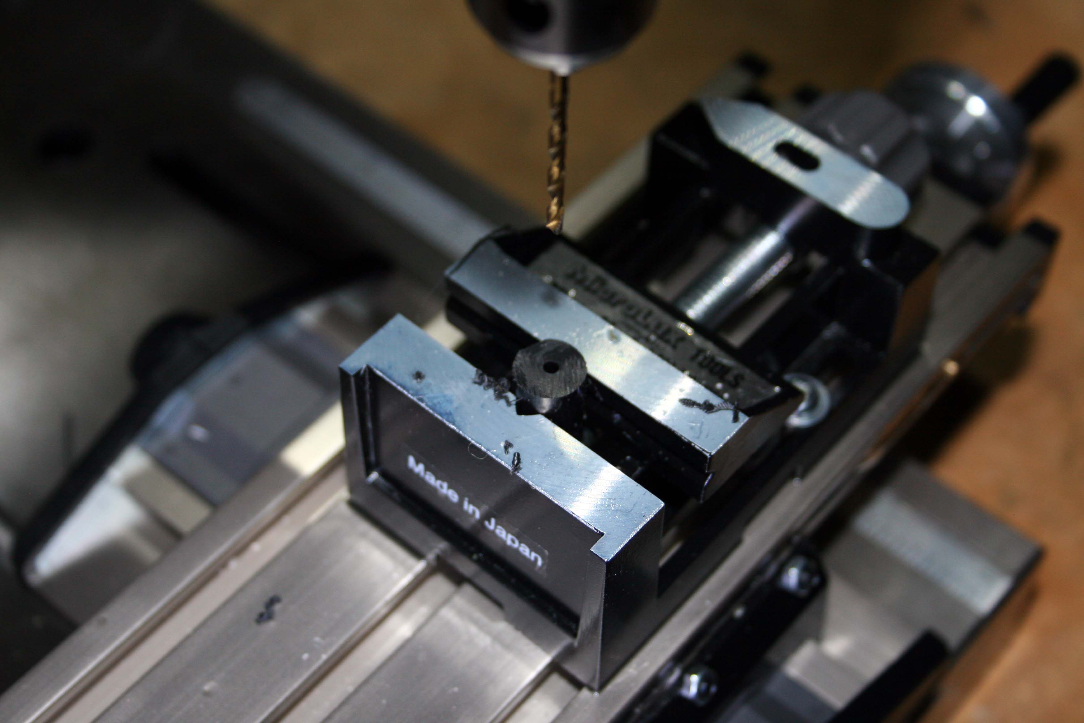 Each foot is secured to the base with a small steel screw. There should be three feet but here I only had two. The original rubber feet had hardened long ago so I matched the look and feel of the two remaining feet by fabricating the third from a bit of nylon rod. It’s quite fun to whittle away the soft nylon on the lathe and this job also gave me an excuse to use the micro drill press (which I just love).