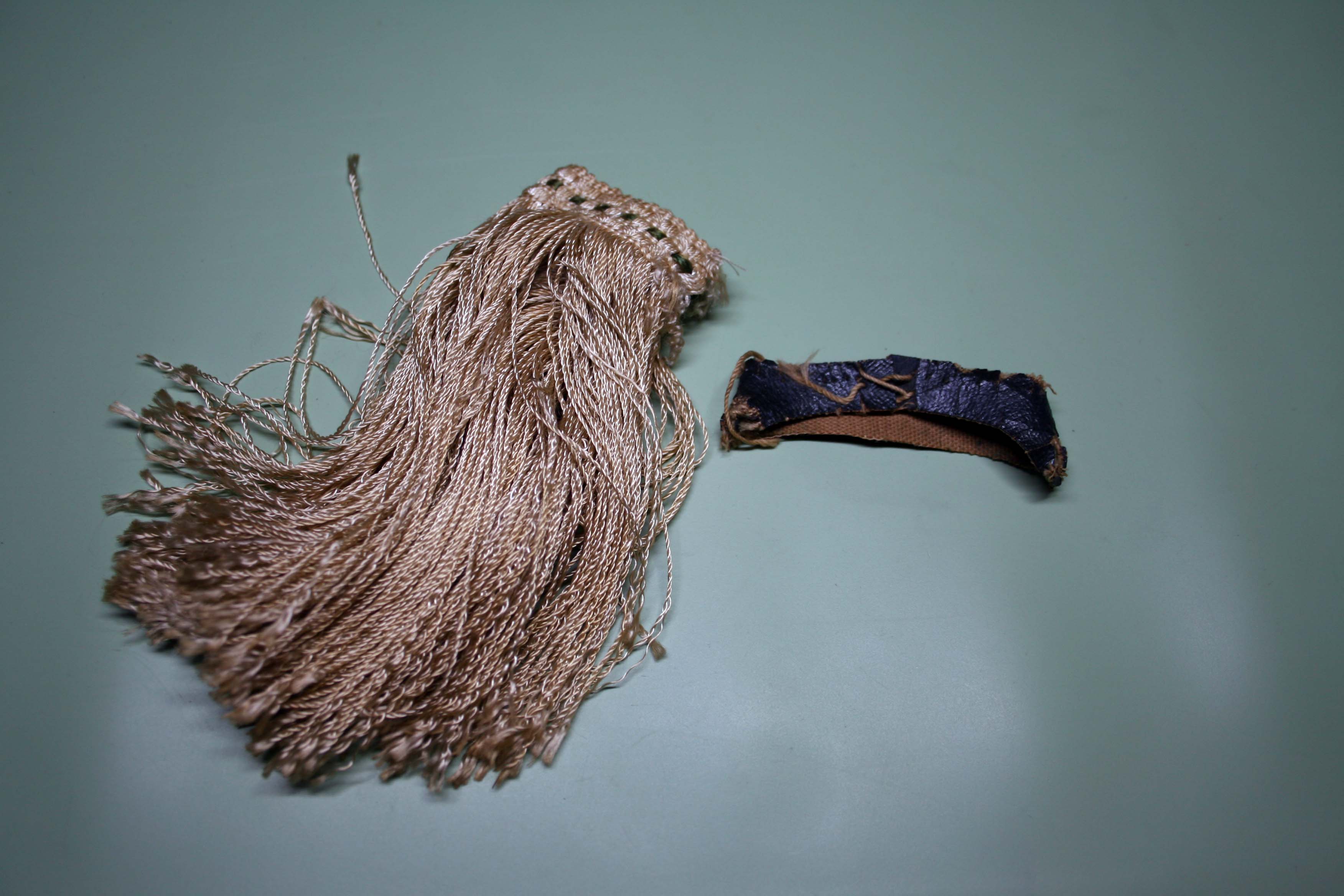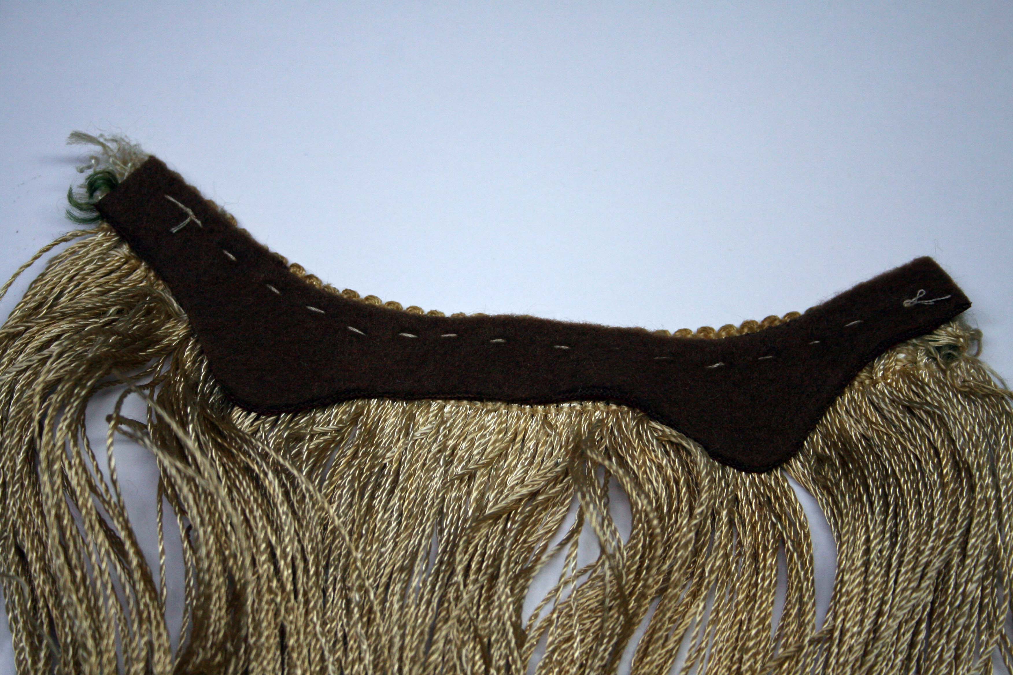 Feet fixed and still waiting on the copper stock, I turned my attention to the dancer’s skirt. Scot had thoughtfully supplied this with the lamp but unfortunately it was in poor repair; the faux leather band which is sewn inside the waistband had come undone and would need attention.