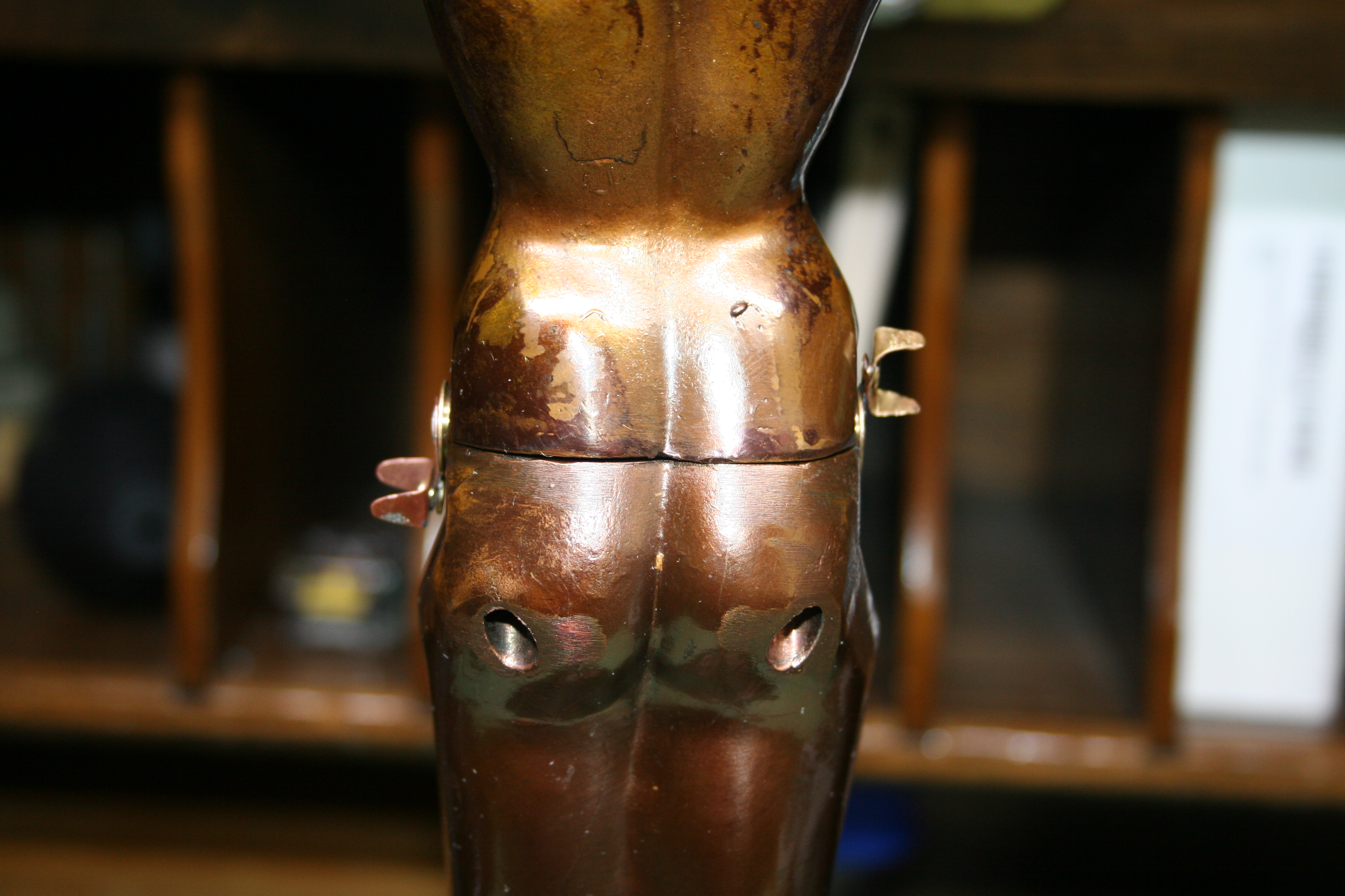 Well here is a another hula girl lamp from the 1940’s! I didn’t expect to see one of these so soon but I was contacted by an gentleman named Scot inquiring about a repair. This lamp has the exact same defect as the one I serviced earlier- one of the fasteners for the skirt had failed.