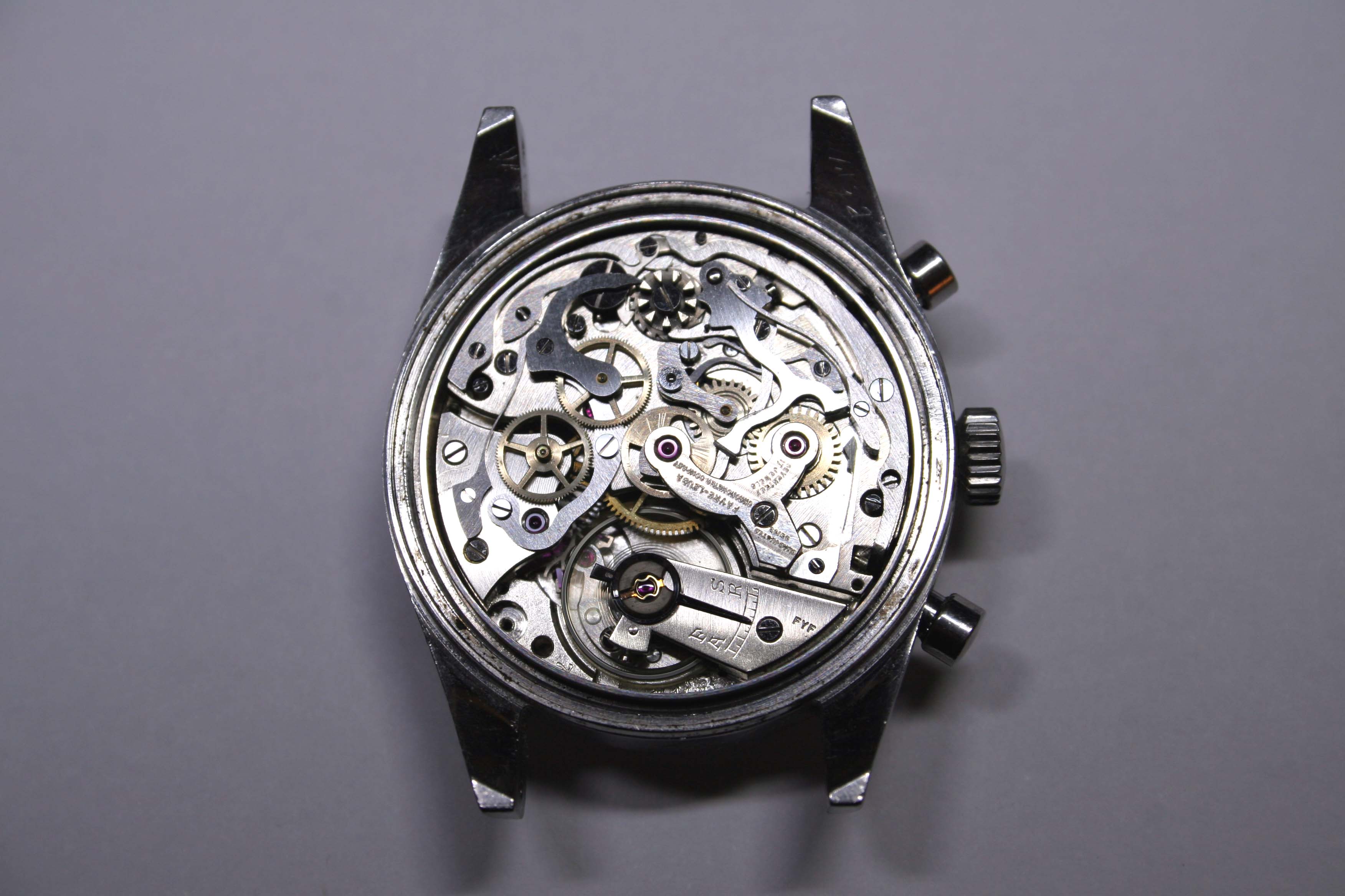 The watch in this post is not a Bivouac, but instead a three register chronograph from Favre Leuba. There may not be a minute aneroid barometer inside but I was still excited to engage in the service as this watch houses a proper Valjoux 71 chronograph movement.