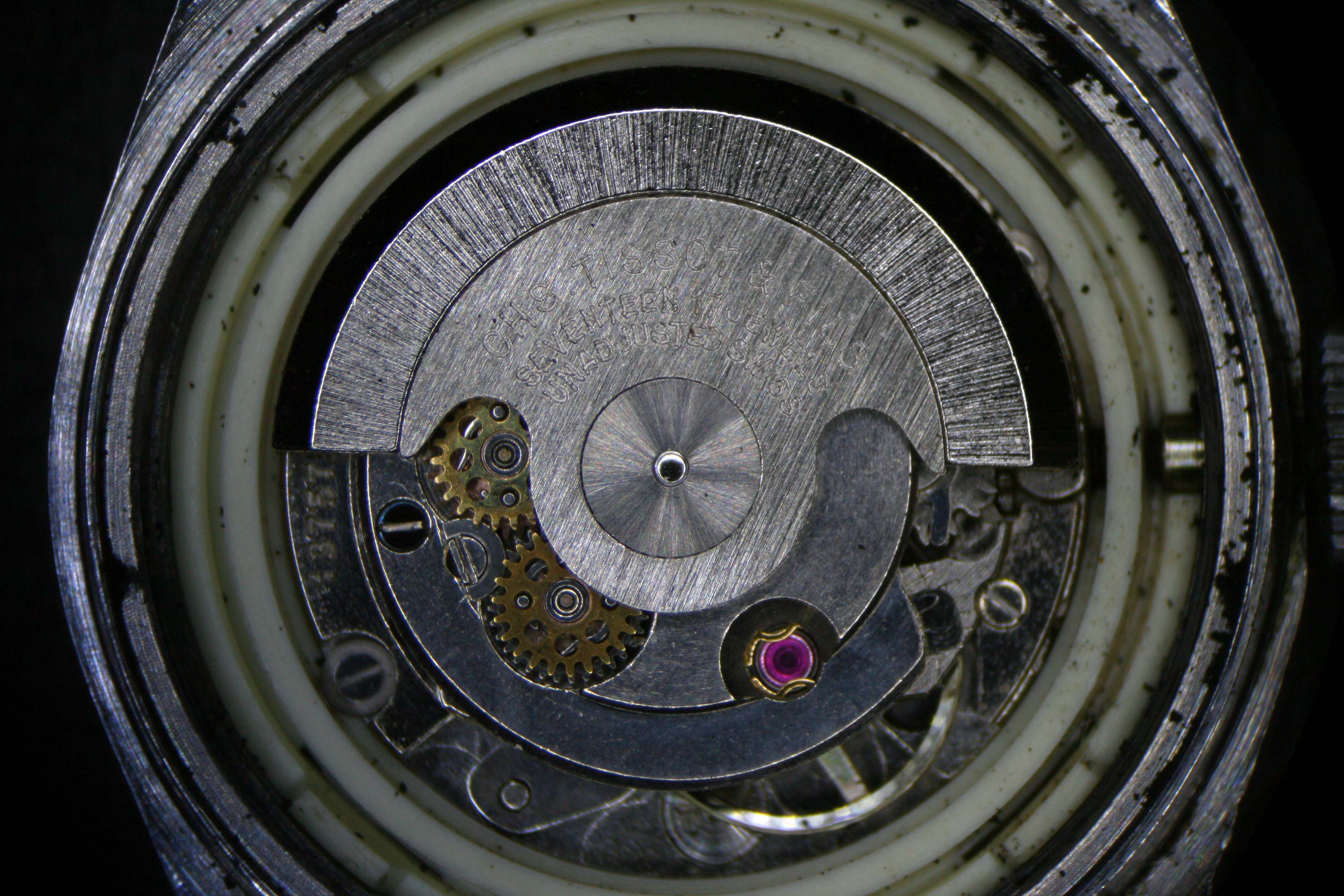 The case received a full cleaning and new set of gaskets. The gaskets in the crown were replaced for good measure. A quick buff with a Scotchbrite returned the brushed finish to the case. With the aesthetic work done I installed the movement followed by the autowinding mechanism.