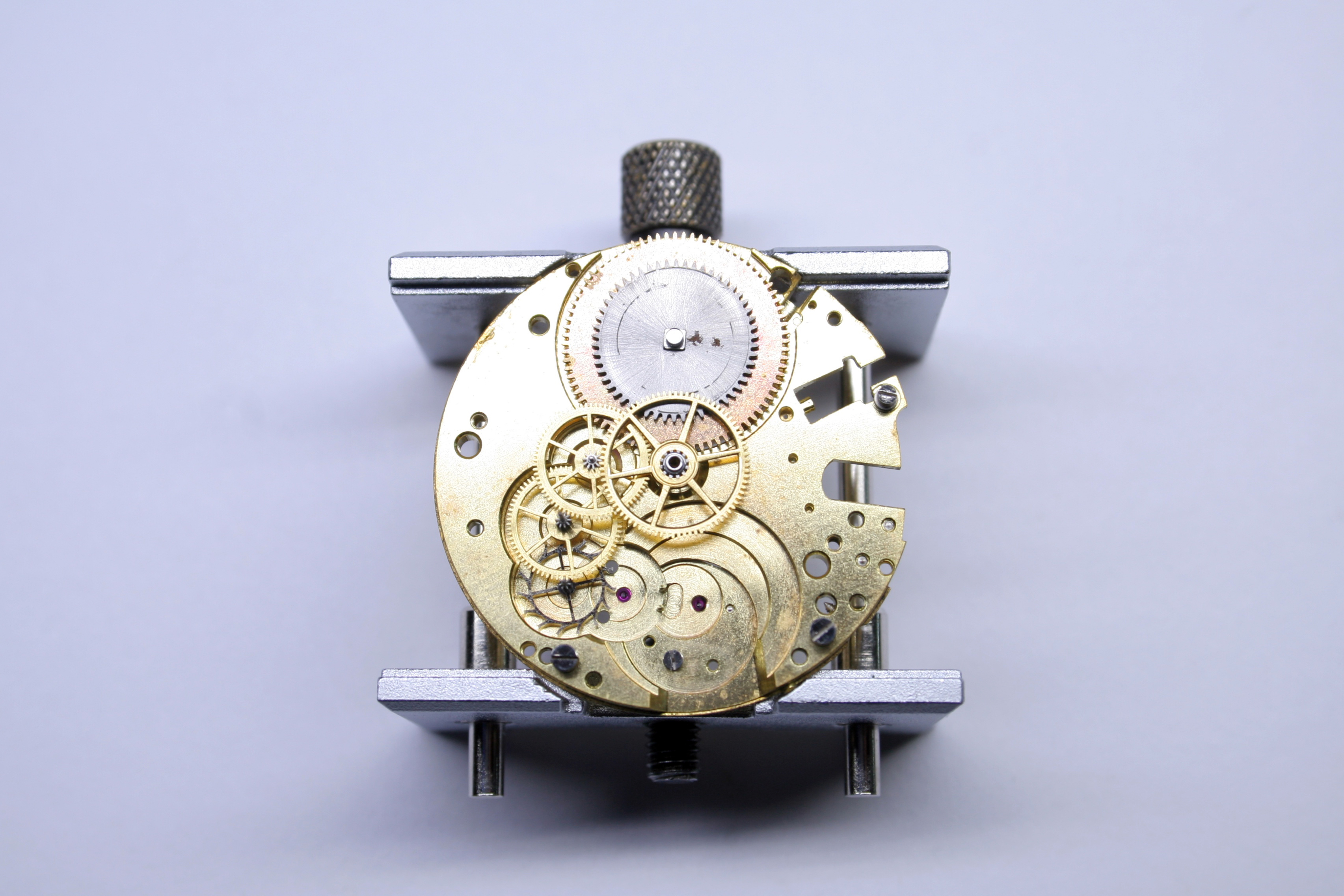 Sometimes you’re helped by the wonderful Swiss watchmakers of yore though and this is certainly one of those times. This movement, by all rights, should not work properly. It was received in a ziplock bag with a handful of other chronograph movements covered in old oil and grime. It’s nearly eighty years old. Yet after a good clean and installation of a new Mainspring it jumps back to life and with no adjustment to the hairspring or balance, keeping solid time in multiple positions.