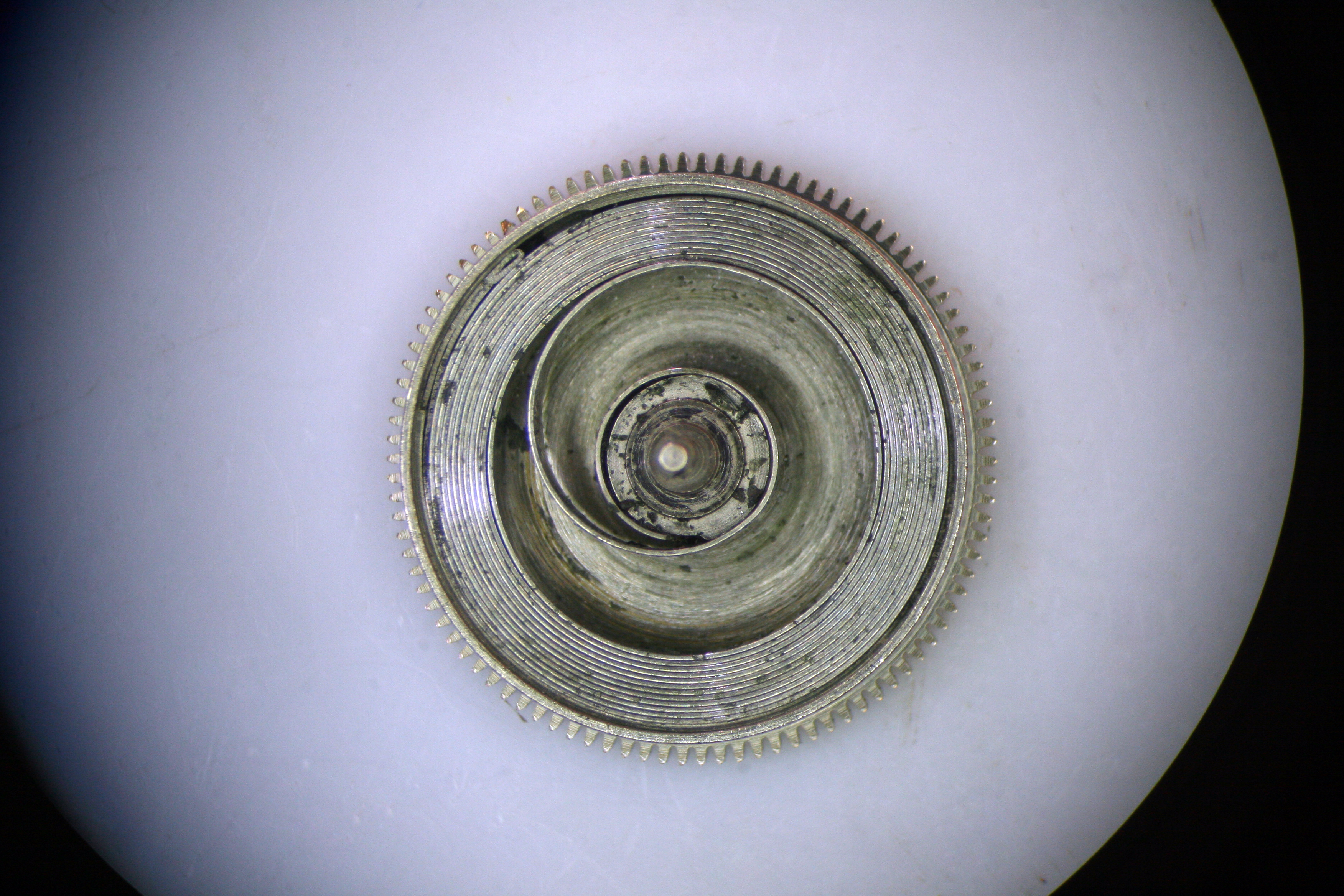 Replacement barrels can be costly but before replacing it I cleaned up the tooth damage with a fine escapement file and polishing stone. I’ll reassemble the movement using the existing Mainspring Barrel and let it run several days to test the repair.