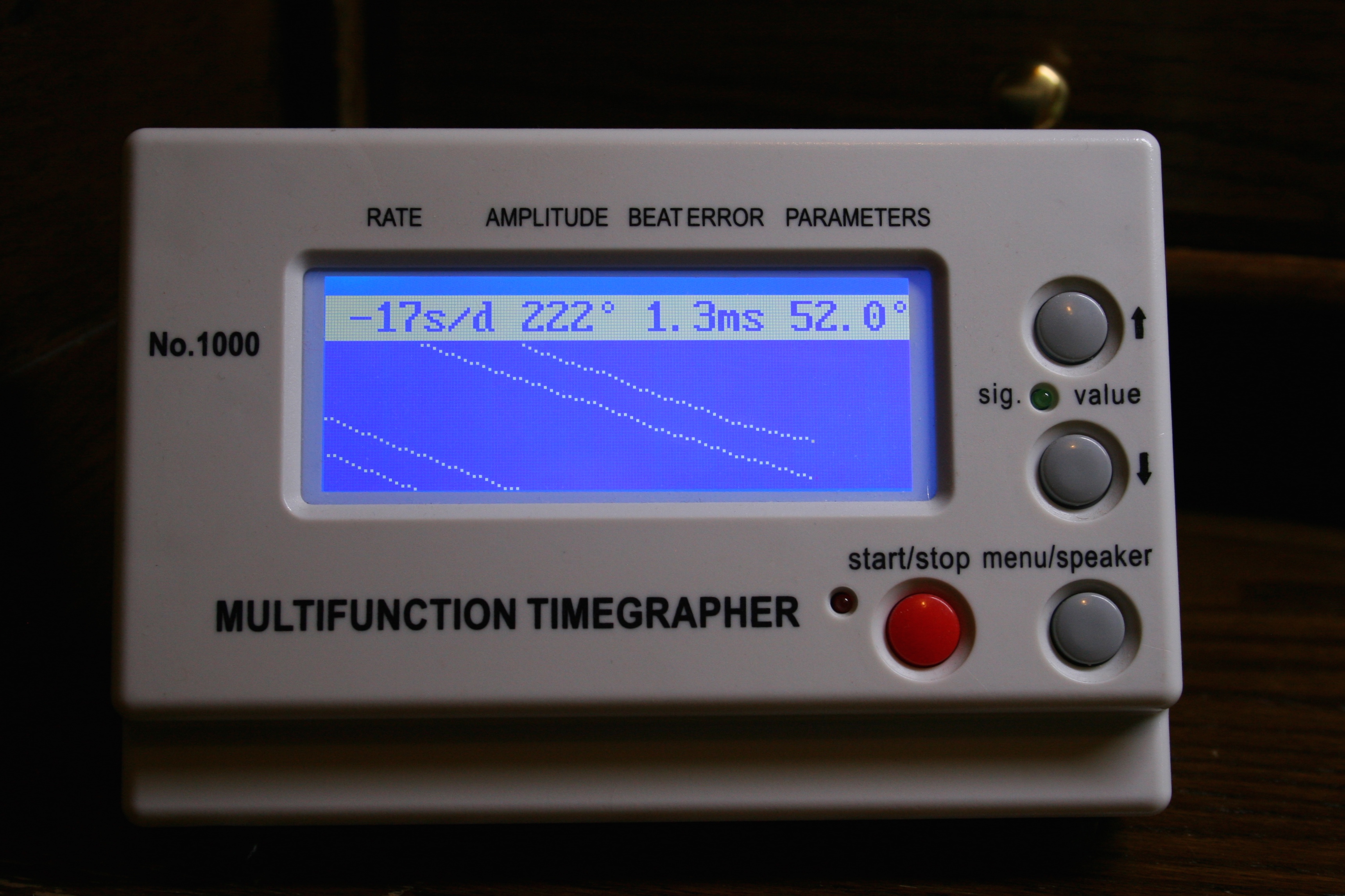 Having corrected the two issues already identified, I reassembled the watch, gave it a good wind and set it on the timegrapher. The amplitude displayed (218 degrees) was impressive and although it was running slow, I expected a good cleaning would set it right.