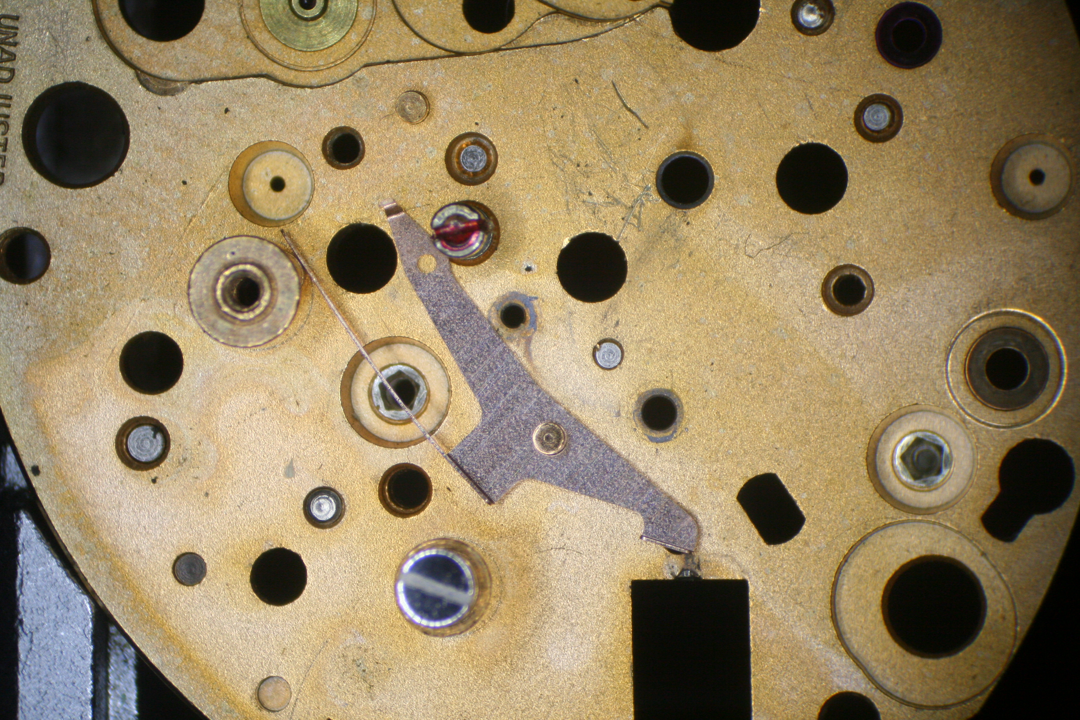 I wasn’t sure if the watch was running consistently quick and the timegrapher was failing to read it or if perhaps the watch was running fine when tested only to go off the rails while unobserved. As a experiment, I started the chronograph while simultaneously starting the stopwatch on my iPhone. As soon as the iPhone read sixty seconds elapsed I stopped the chronograph- the Speedmaster read only fifty-eight seconds elapsed. I ran the test again with the same result. The watch was always running fast and the timegrapher couldn’t see it; luckily I had seen something like this once before.