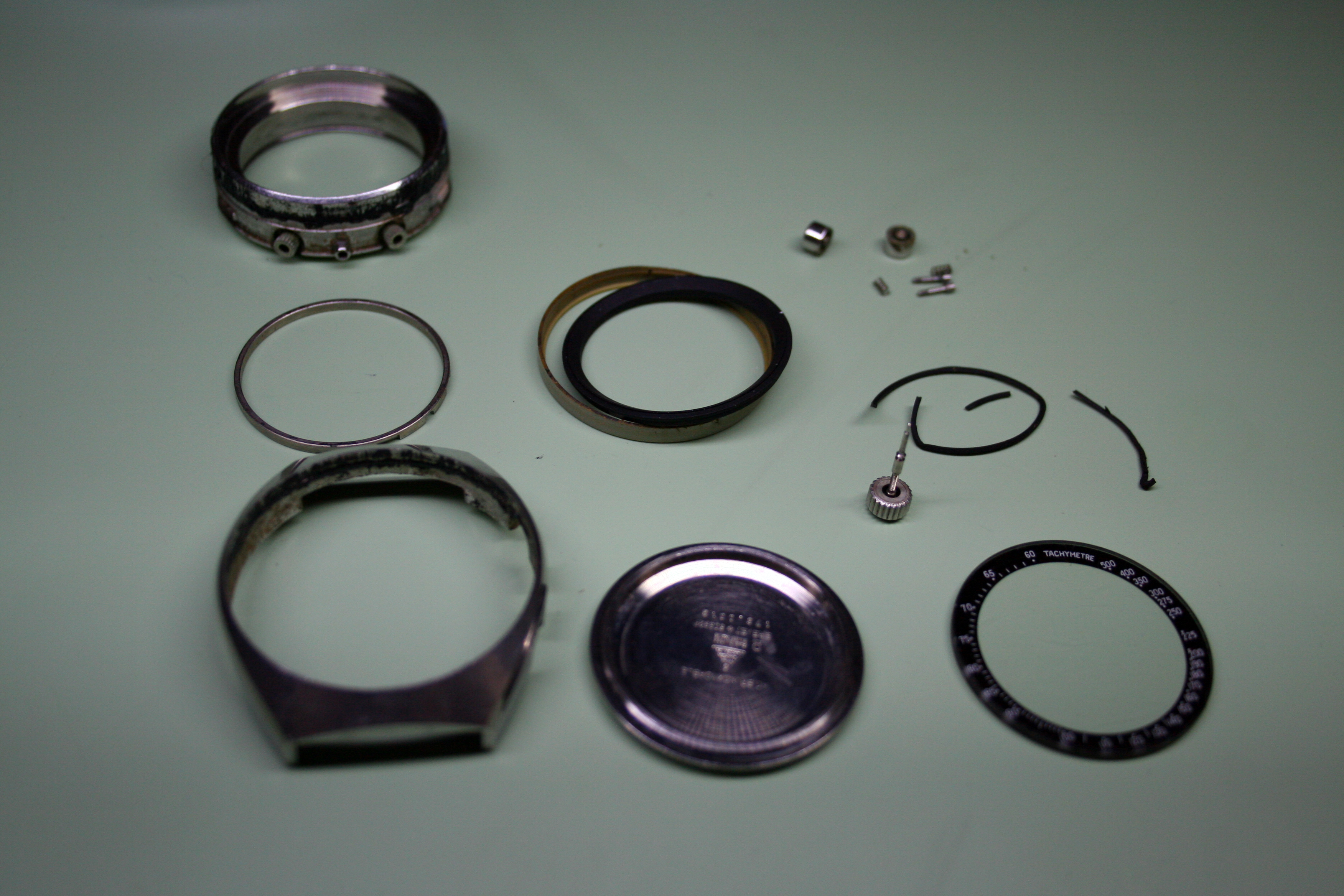 Before putting the case together I ordered a replacement Crown, Crystal, and full set of gaskets. The Movement Spring, which holds the movement tight in the case, was missing and needed replacement too.