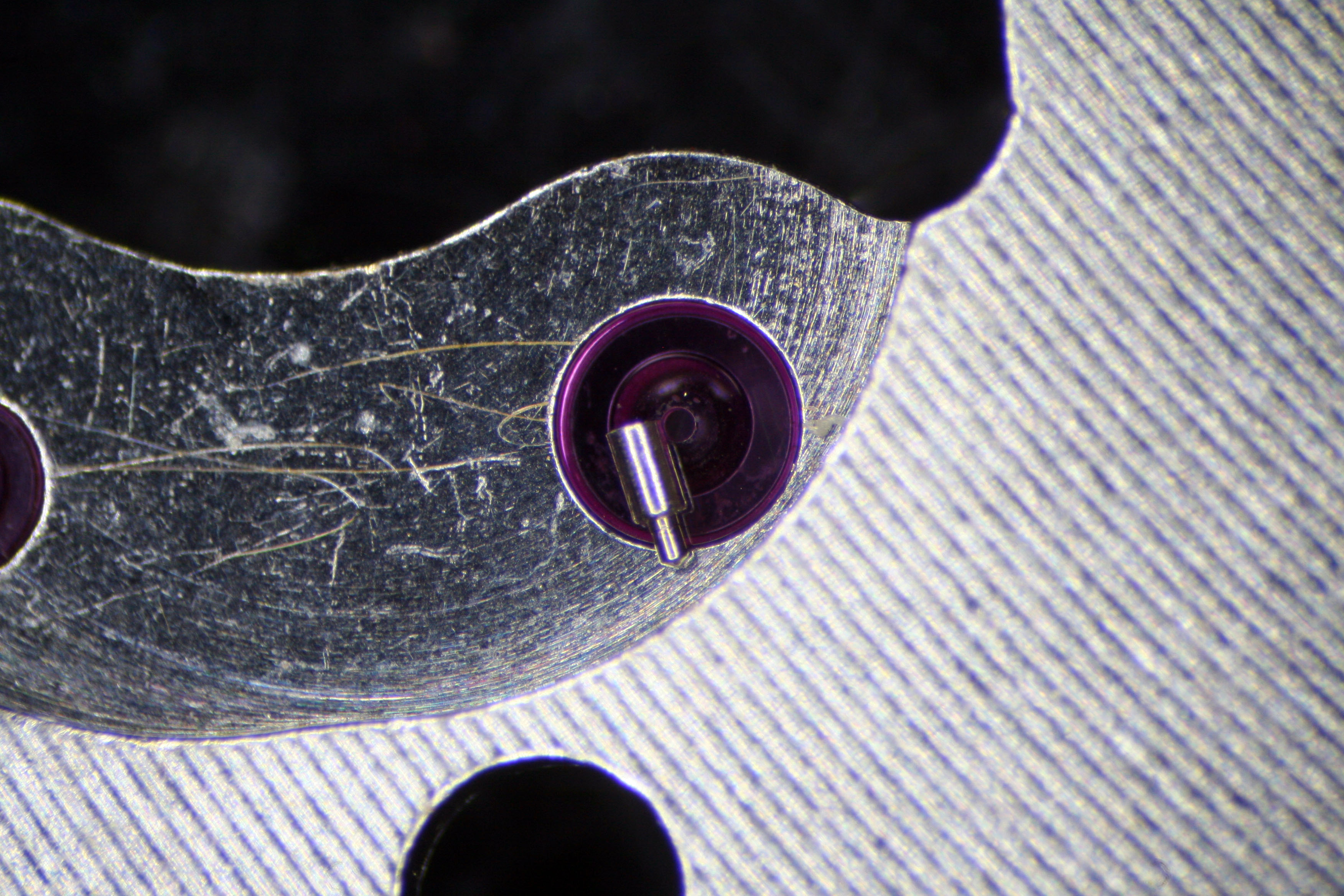 An unfortunate discovery was made as I removed the Barrel Bridge- a replacement Third Wheel would be needed as the pivot had sheared off cleanly but remained in place thanks to the jeweled bearing.