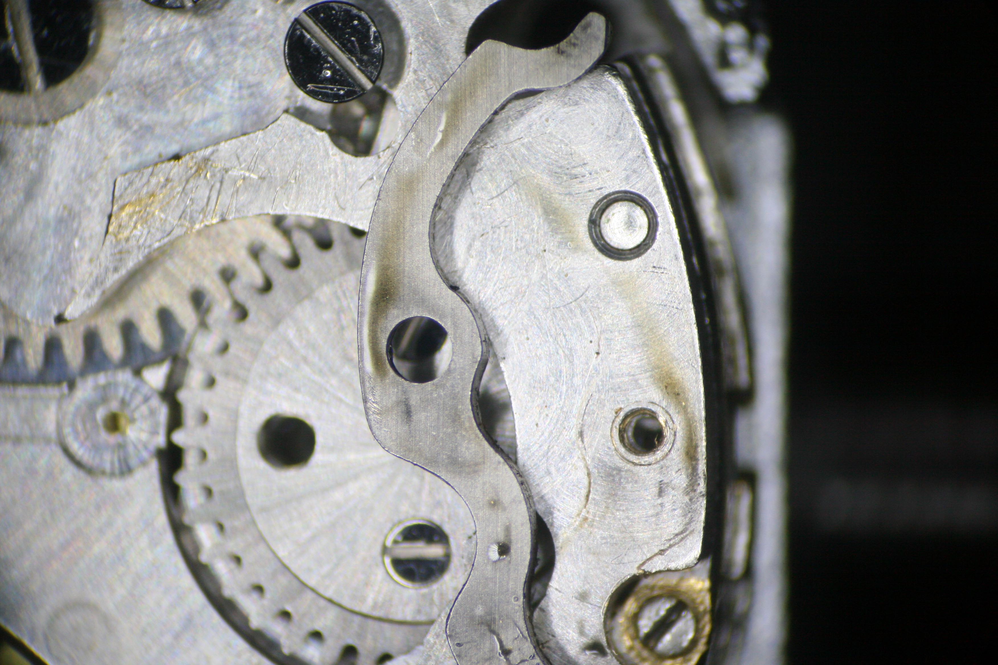 Excessive oil on the various levers and shouldered screws of the chronograph works was another problem. Honestly I’d rather see too much oil than too little but too much will attract debris and can lead to early wear. It also fouls the pricey cleaning solutions in the L&R machine. Before putting these bits in the cleaner a wipe down with isopropyl alcohol would be in order.